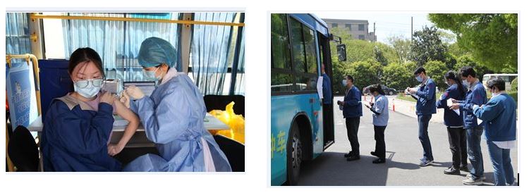 4月19日新吳區(qū)移動疫苗接種車駛進集團鴻山園區(qū),醫(yī)務(wù)工作者為二百多名員工進行新冠滅活疫苗第一劑次接種,此次疫苗接種由鴻山街道新冠疫情防控指揮部組織。